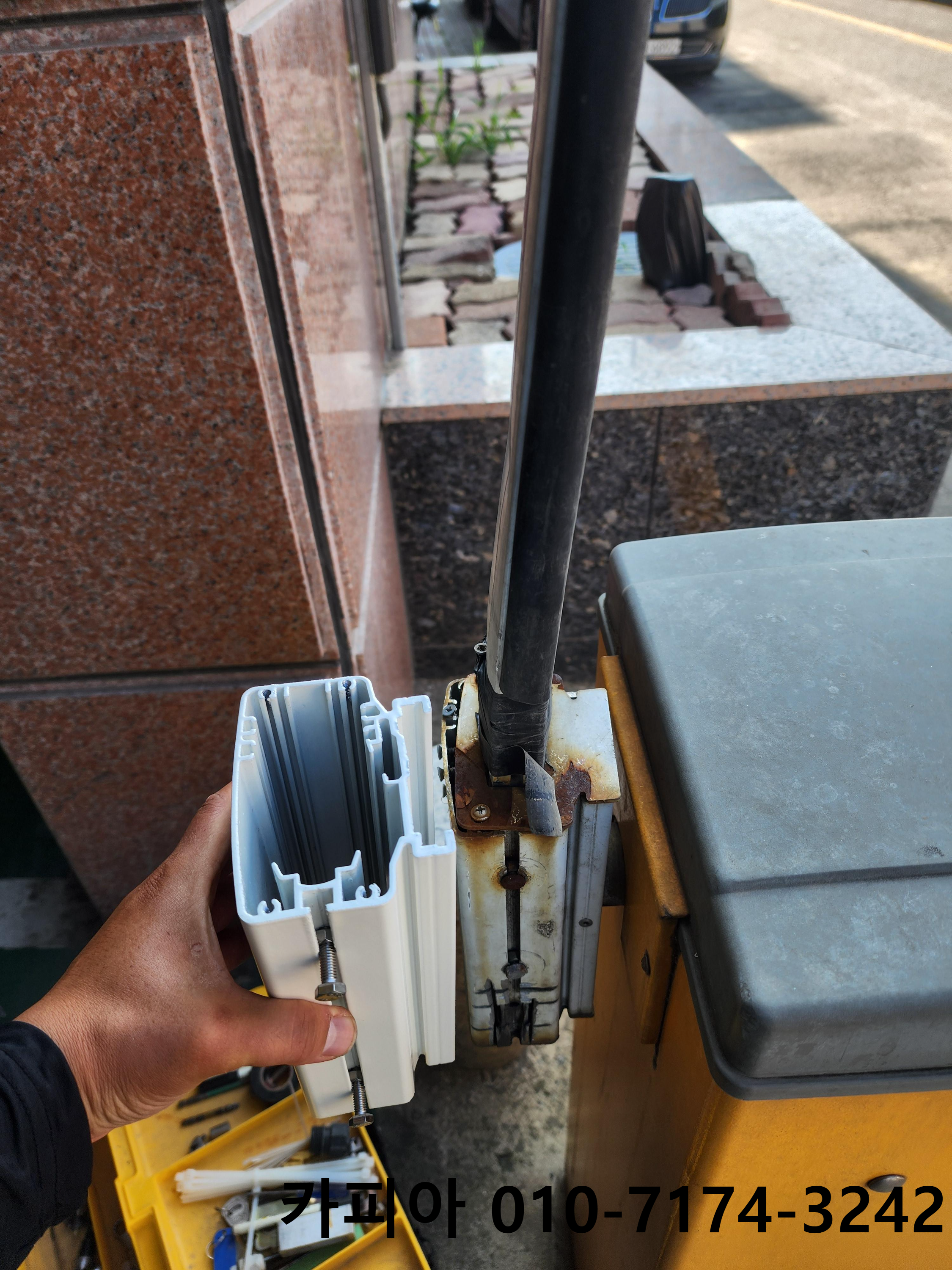 11년 차 현장 경험을 바탕으로 고시텔, 원룸, 상가, 공장, 기업 출입구 등 다양한 현장의 주차차단기 설치·수리를 전문으로 진행하고 있습니다. 이번 현장은 천안 소나무 고시텔 주차차단기 차단기바 차량접촉사고 교체 및 차단기바 홀더 교체 수리 작업입니다.